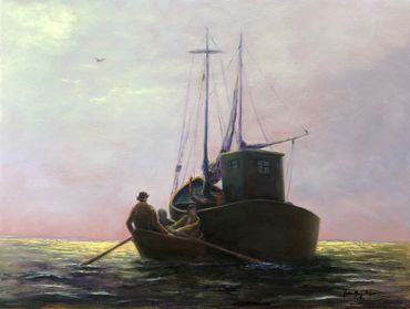I enjoy power walks through the dunes at the National Seashore Park in Provincetown. During these walks, I often marvel at the sights, sounds, glimpses of the water and the reflections and contrasts of light and shadow. Time stands still, and my heart is lightened by sheer wonder and gratitude. Sailing Home, oil on linen canvas 6x8 inches, and framed in a black floater style frame. For Venmo or other forms of payment, please contact me at artbyjoao23@gmail.com . Thank you!
